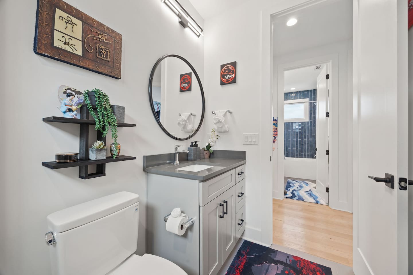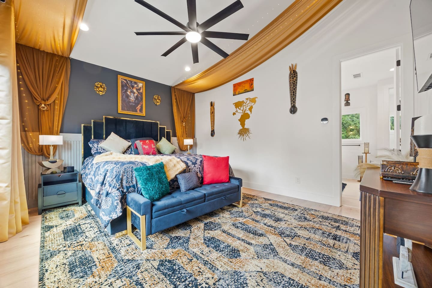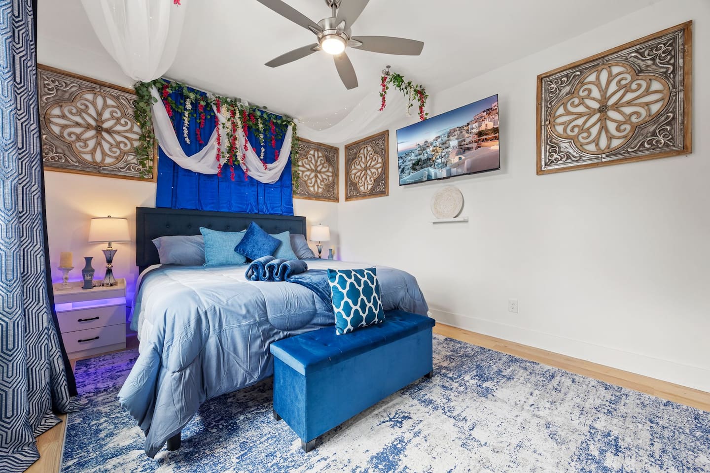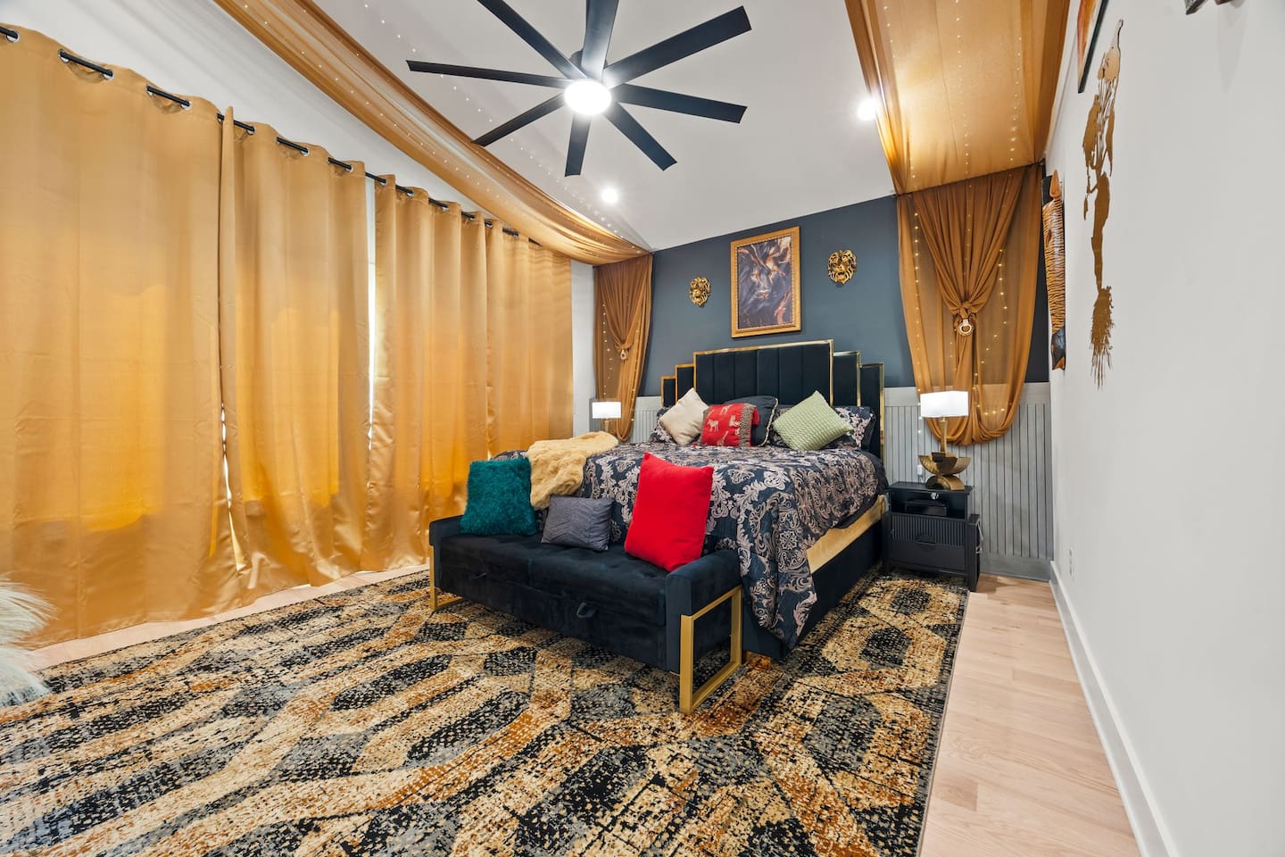 Welcome to your dream stay in the heart of Edgewood! This brand-new 4-bedroom, 4.5-bathroom modern home is designed for comfort, style, and entertainment. With multiple levels of outdoor living, city life views, and premium amenities, it’s the perfect Atlanta getaway. Step inside to an open-concept floor plan with sleek finishes and modern design throughout. Overall, in this unique, one-of-a-kind luxury home, you will enjoy: 🛌 4 spacious bedrooms, each has a different theme (Paris, Rome, Africa, etc.) each with plush king-size beds and smart TVs, see further details below. 🛁 4.5 full bathrooms with premium fixtures & spa-like showers. Each bedroom has a dedicated full-size bathroom. The half-bathroom is located on the main floor with the living room and kitchen. 🍳 Chef’s kitchen with high-end appliances & island seating 🎱 Entertainment/game room featuring a pool table, skee-ball machine, board games, 2 flat screen TVs and lounge space including out on the spacious patio deck. 🏡 3 levels of outdoor patios for dining, lounging, and enjoying the view 🛁 Private 5seat hot tub for relaxation (NOW AVAILABLE ) 🔥 Outdoor fire pit for cozy evenings (Coming Soon) Every detail has been carefully curated for both luxury and comfort!! Each bedroom has a different theme: Bedroom 1: Brazil – Vibrant Energy Celebrate the colorful vibrancy of Brazil with a room alive with bold patterns and tropical inspiration. Lush greenery, bright jewel-toned textiles, and playful art give the space great energy, while a luxurious queen bed ensures total comfort. Enjoy a full-sized bathroom located next to this room. Bedroom 2: Greece – Coastal Serenity Step into the tranquil charm of the Greek Isles with crisp white walls, soft blue accents, and airy linen textures. This bedroom features a plush queen bed, and subtle touches of Santorini. Enjoy a full-sized bathroom located next to this room. Bedroom 3: Paris – Romantic Elegance The Paris room radiates timeless romance with chic sophistication, featuring the beauty Eiffel Tower wall, Paris theme pillows atop the plush queen bed and several other Paris themed finishing touches for those who want refined luxury and a touch of passion. Enjoy a full-sized bathroom located next to this room. Bedroom 4: Africa Master Bedroom w/luxury en-suite bathroom. Enjoy the en-suite large , spa bathroom with walk-in shower, spa bathtub and spacious walk-in closet. Rich earth tones, natural textures, and bold patterns define this exotic space. A large king size bed draped in soft linen evokes safari luxury, while tribal-inspired art and handcrafted décor bring authenticity. This is the perfect space for both adventure and comfort — a perfect blend of wild spirit and modern indulgence.