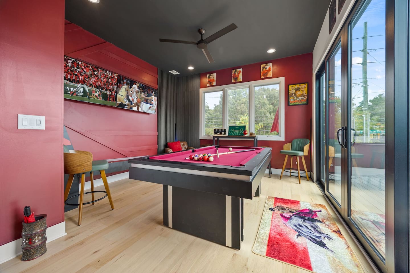 20% Off-NEW LISTING! Modern 4BR/4.5BA luxury home mins from Downtown Atlanta, family-friendly, corporate retreats, event friendly with approval! This is the ultimate vacation rental home! Enjoy the chef's kitchen, have fun choosing your room - Brazil, Greece, Paris, Africa - each BR/BA has a different theme! Hangout in the game room, w/ 2 TV's, pool table, access to 3rd floor balcony, or chill on the rooftop balcony, or yoga and relax on the screened in porch and don't forget the hot tub!
